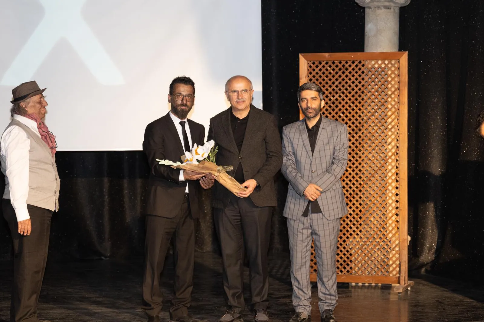 Sami Er, eşi Sevgi Er ile birlikte oyunu izledi. Program sonunda sahne alan oyunculara çiçek takdim edildi.